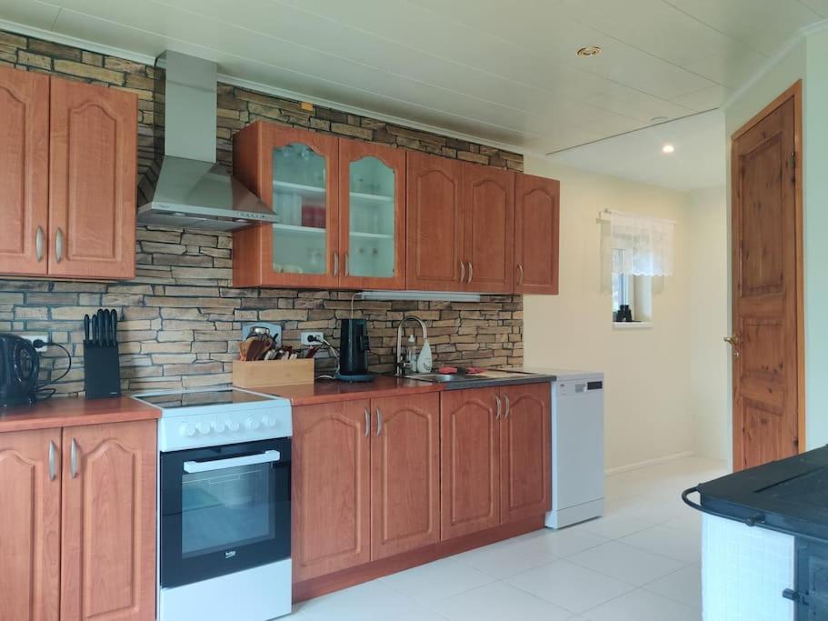 Four-Bedroom House. Guests will have a special experience as this holiday home offers a sauna. Featuring a private entrance, this holiday home is comprised of 1 living room, 4 separate bedrooms and 1 bathroom with a walk-in shower and slippers. Guests will find a stovetop, a refrigerator, a dishwasher and an oven in the well-equipped kitchen. The holiday home also has a barbecue. The holiday home features a coffee machine, a seating area, a dining area as well as a terrace with garden views. The unit offers 8 beds.