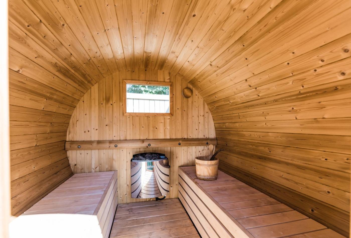 Deluxe Double Room with Extra Bed. This double room features a sauna. Guests can make meals in the kitchen that has a stovetop, a refrigerator, kitchenware and a microwave. The double room features air conditioning, a private entrance, a terrace with garden views as well as a private bathroom boasting a walk-in shower. The unit has 2 beds.