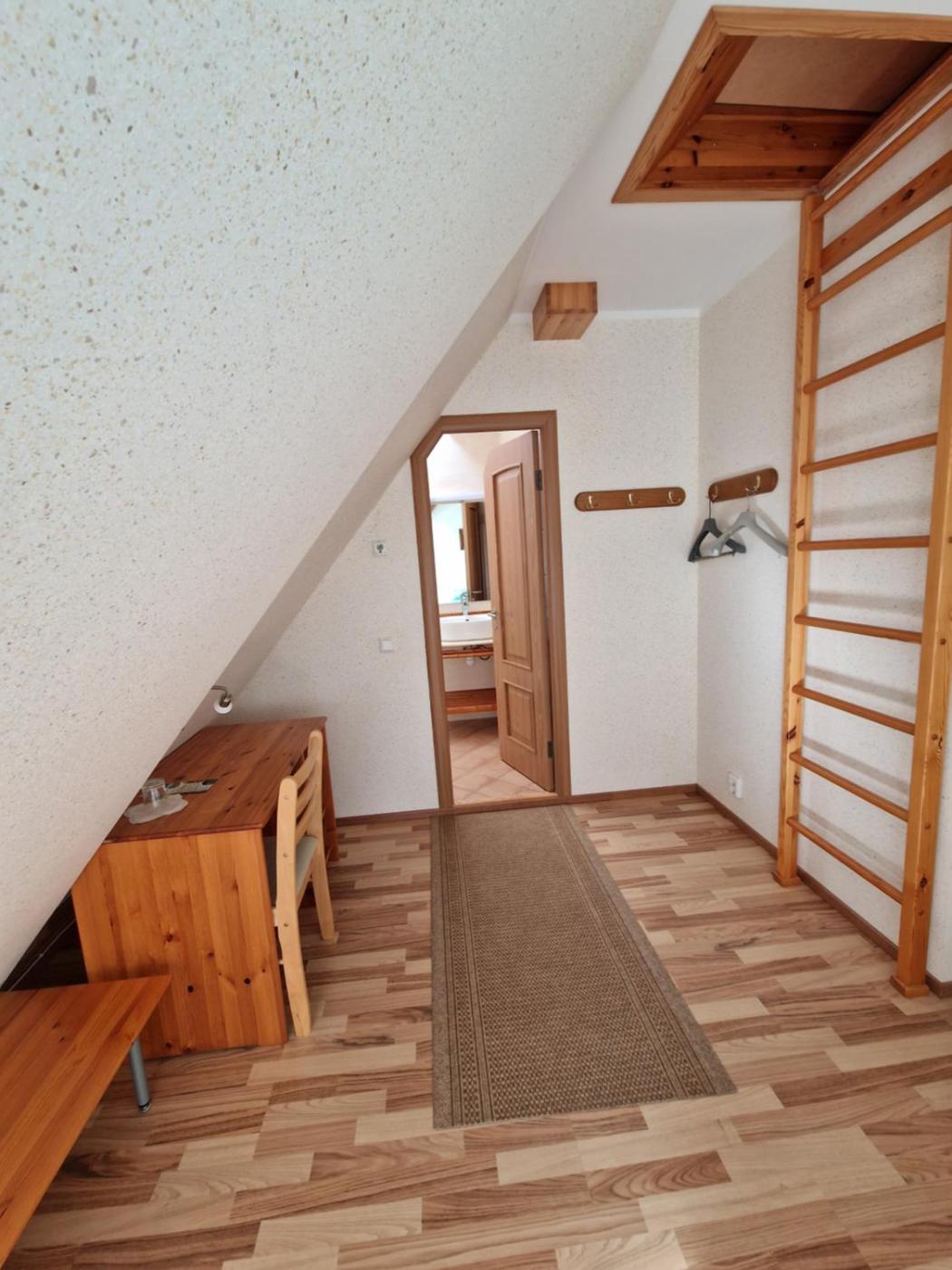 Family Room with children under the Attic. This family rooms special feature is the sauna. The family room offers a high chair for children, parquet floors, a terrace with garden views as well as a private bathroom boasting a walk-in shower. The unit has 1 bed. ;