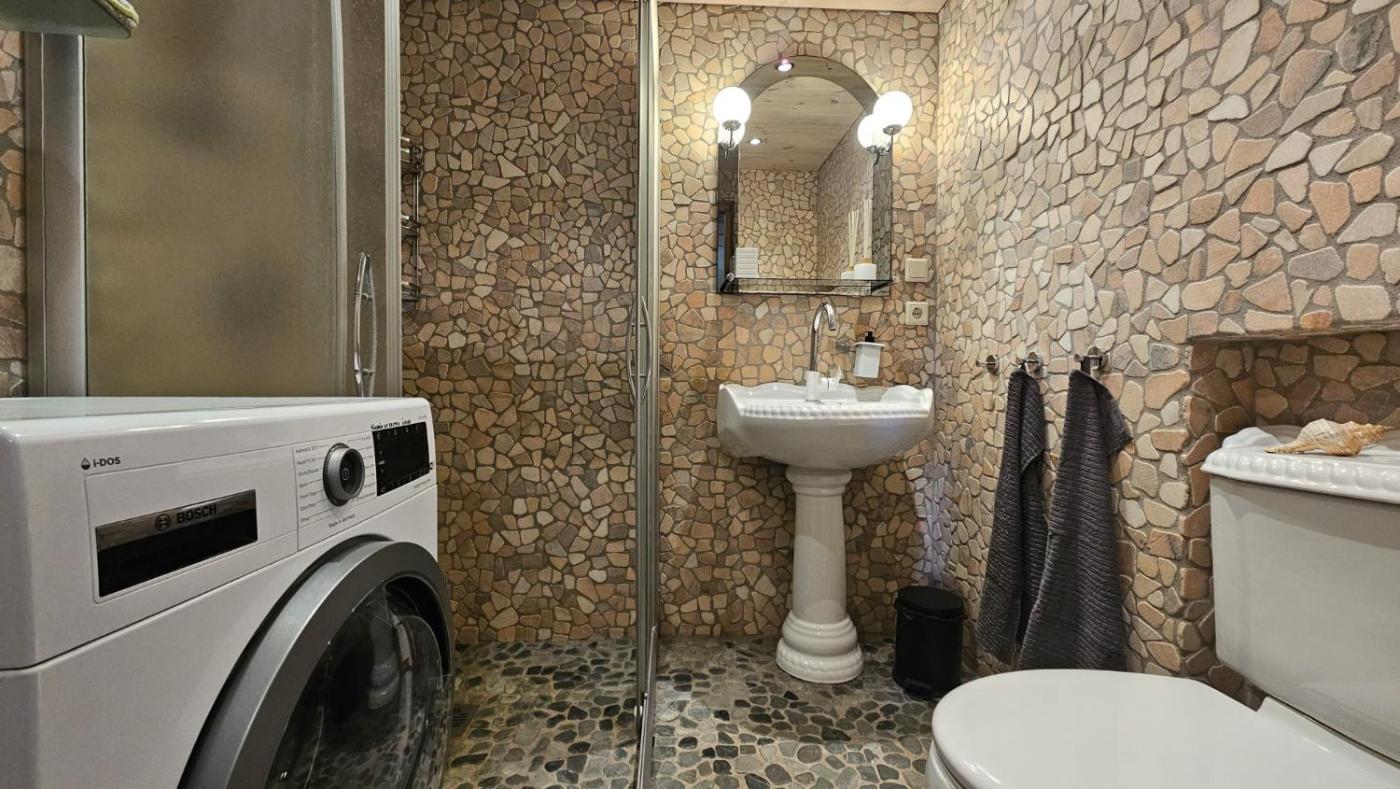 Three-Bedroom Villa. This villa features a sauna and a fireplace. Boasting a private entrance, this villa features 1 living room, 3 separate bedrooms and 1 bathroom with a shower and a hairdryer. Guests can make meals in the kitchen that has a stovetop, a refrigerator, a microwave and an electric kettle. Featuring a terrace with sea views, this villa also features a washing machine and a flat-screen TV with cable channels. The unit has 4 beds.