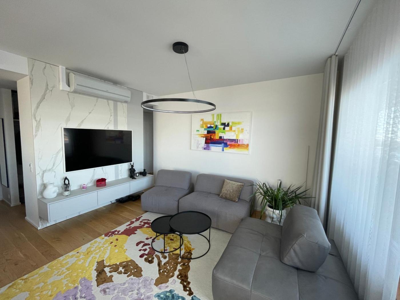 Two-Bedroom Apartment. Guests will have a special experience as this apartment provides a sauna. This spacious apartment is comprised of 1 living room, 2 separate bedrooms and 1 bathroom with a walk-in shower and free toiletries. The well-fitted kitchen features a stovetop, a refrigerator, a dishwasher and kitchenware. The air-conditioned apartment offers a flat-screen TV with streaming services, a washing machine, a tea and coffee maker, a wardrobe as well as river views. The unit offers 2 beds.