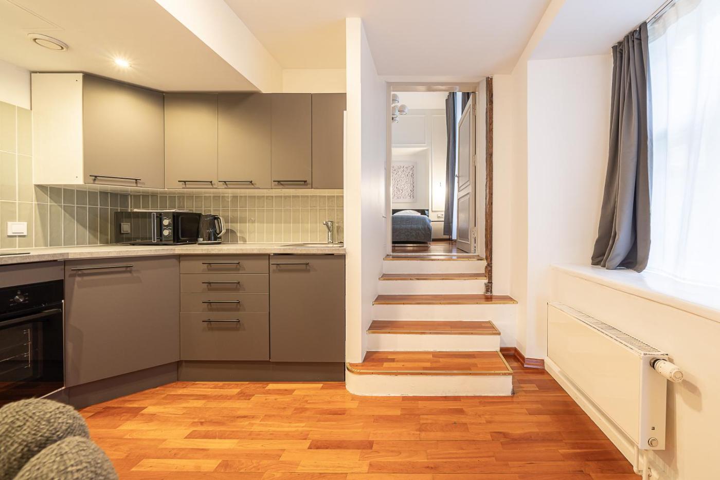 Superior One-Bedroom Apartment. Guests will have a special experience as the apartment provides a sauna. Featuring a private entrance, this apartment consists of 1 living room, 1 separate bedroom and 2 bathrooms with a shower and a hairdryer. The fully equipped kitchen features a stovetop, a refrigerator, kitchenware and a microwave. The apartment has parquet floors, a seating area with a flat-screen TV, a washing machine, a dining area as well as ancourtyard view. The unit offers 2 beds.