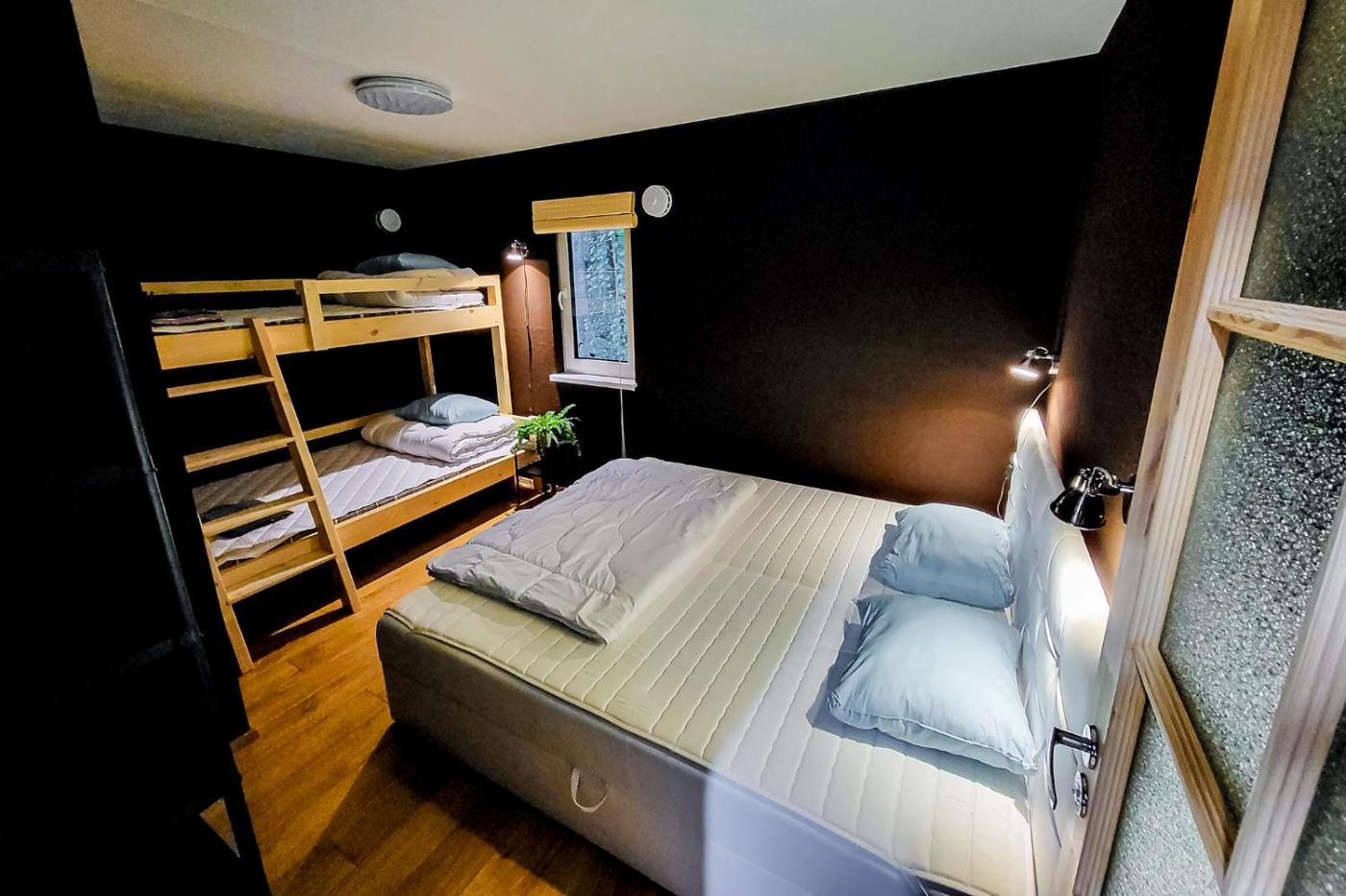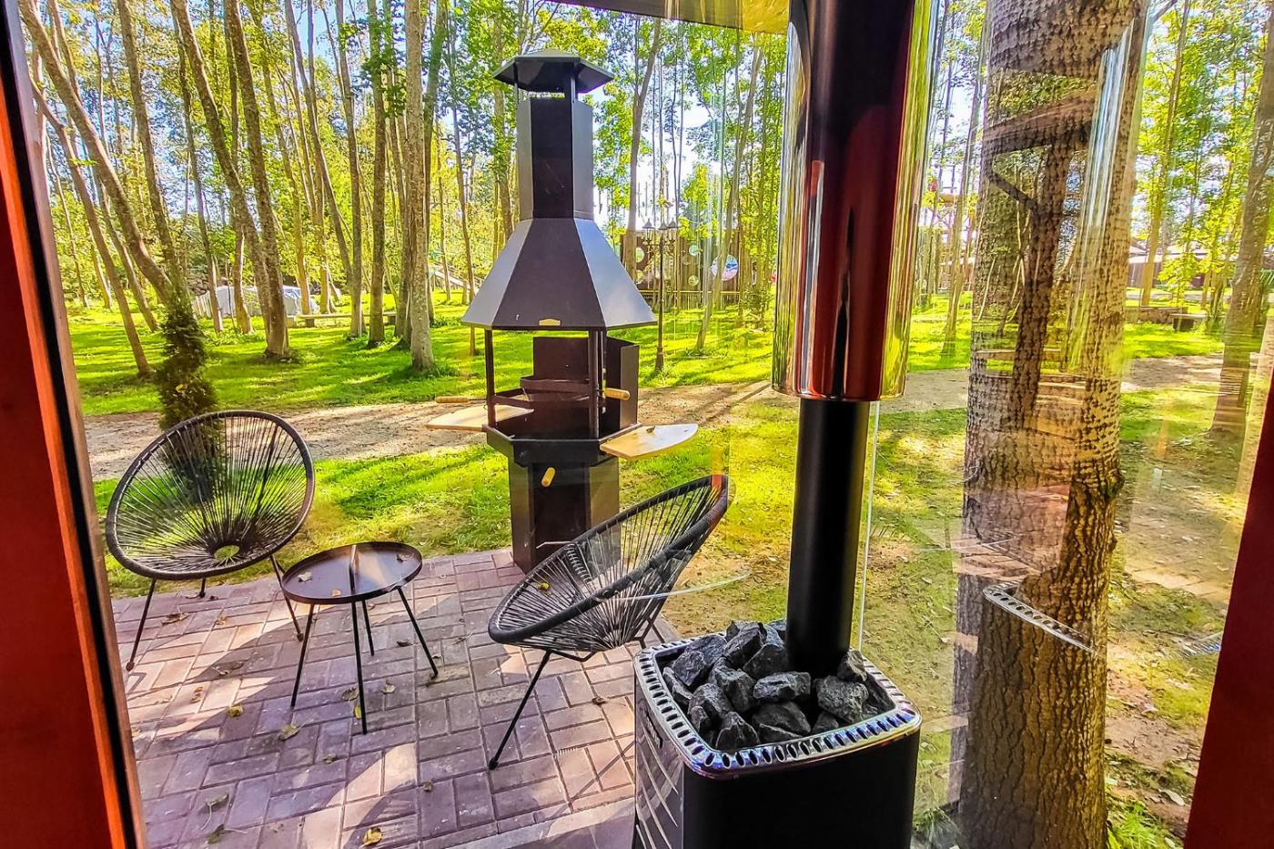Three-Bedroom Chalet. This chalets special feature is the sauna. Featuring a private entrance, this air-conditioned chalet consists of 1 living room, 2 separate bedrooms and 1 bathroom with a walk-in shower and a hairdryer. Guests will find a stovetop, a refrigerator, kitchenware and a microwave in the fully equipped kitchenette. The chalet also offers a barbecue. Boasting a terrace with garden views, this chalet also provides a seating area and a flat-screen TV with cable channels. The unit offers 5 beds and 4 futons.